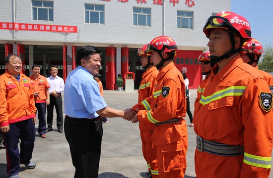 圖為任市長為魯西集團應急救援隊隊長授旗。