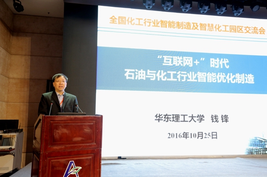 會上,華東理工大學副校長、中國工程院院士錢鋒作了“互聯網+”時代石油化工行業智能優化制造的報告。