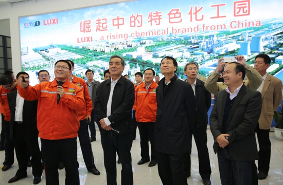 圖為參會領導和與會代表參觀魯西集團化工新材料產業園。