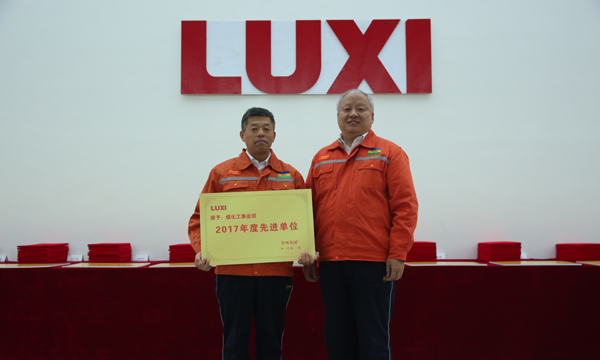 圖為董事長為先進(jìn)單位煤化工事業(yè)部頒獎(jiǎng)。