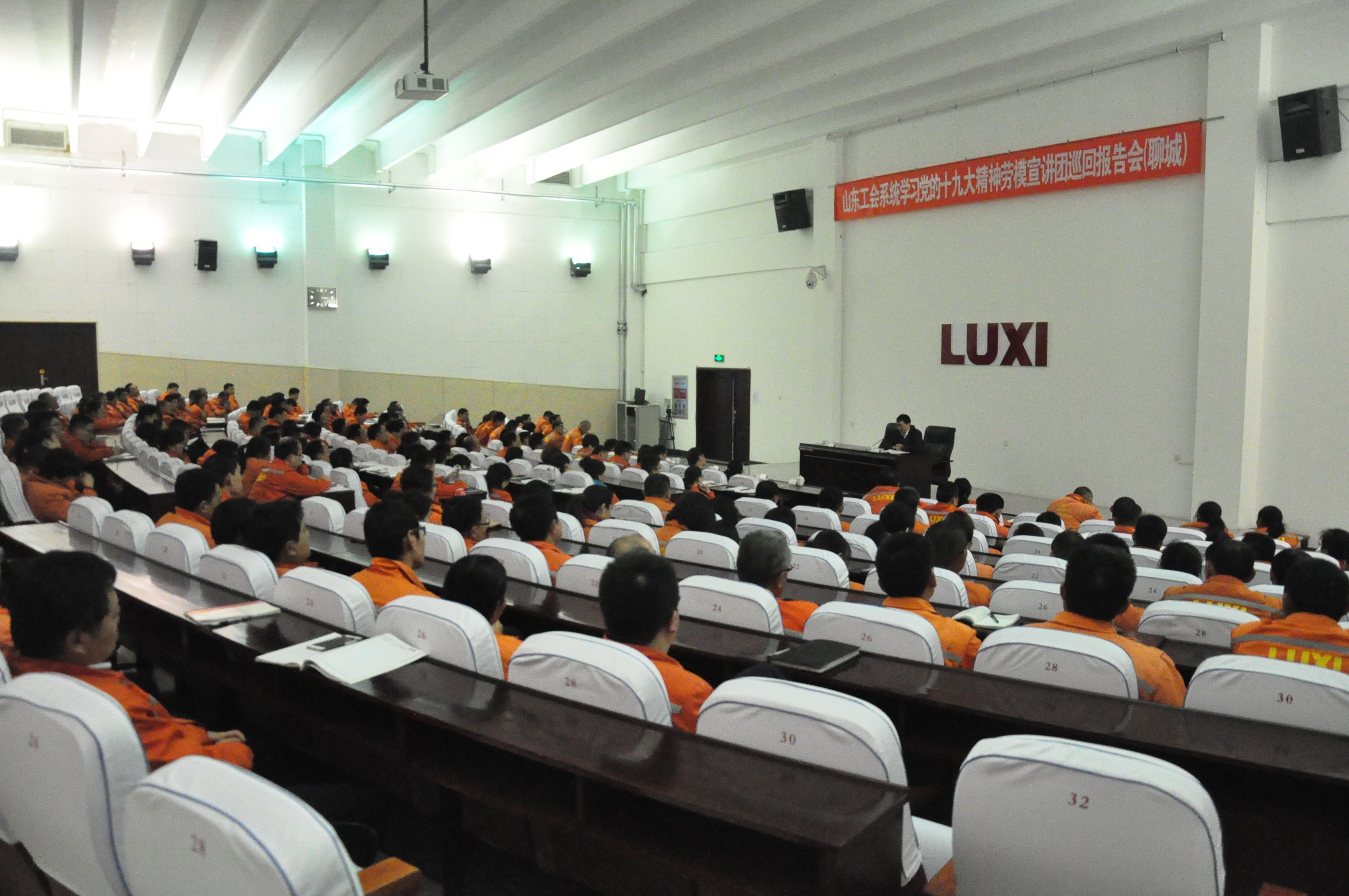 1月10日,山東省總工會(huì)黨的十九大精神勞模宣講團(tuán)在魯西集團(tuán)舉辦了山東工會(huì)系統(tǒng)學(xué)習(xí)黨的十九大精神勞模宣講團(tuán)巡回報(bào)告會(huì)。省總工會(huì)經(jīng)審辦副主任王炳軍、兗礦集團(tuán)南屯煤礦通防工區(qū)副區(qū)長張彥寬,聊城市總工會(huì)紀(jì)檢書記孫希華、宣教部長朱琳,魯西化工副總經(jīng)理、工會(huì)主席張雷等參加。