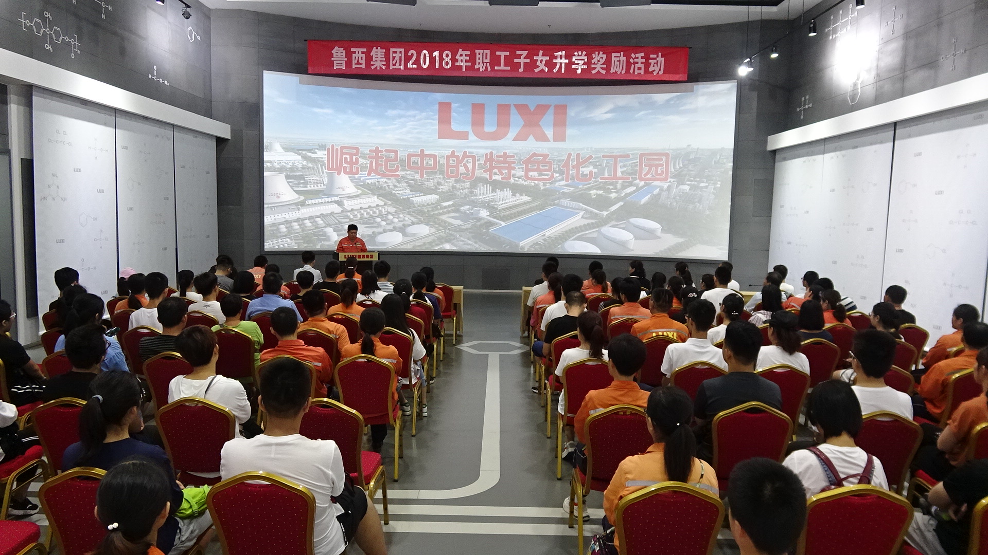 參觀活動結(jié)束后,魯西集團2018年職工子女升學(xué)獎勵頒獎儀式在接待中心四樓隆重舉行。集團工會副主席陶言棟出席活動,祝賀各位學(xué)子金榜題名,祝賀各位家長教育孩子取得成功。鼓勵各位學(xué)子在新的人生旅途中不忘初心,堅定信念,永往直前,積極進取,不辜負企業(yè)和家庭的殷切期望,并現(xiàn)場為職工子女發(fā)放獎學(xué)金。