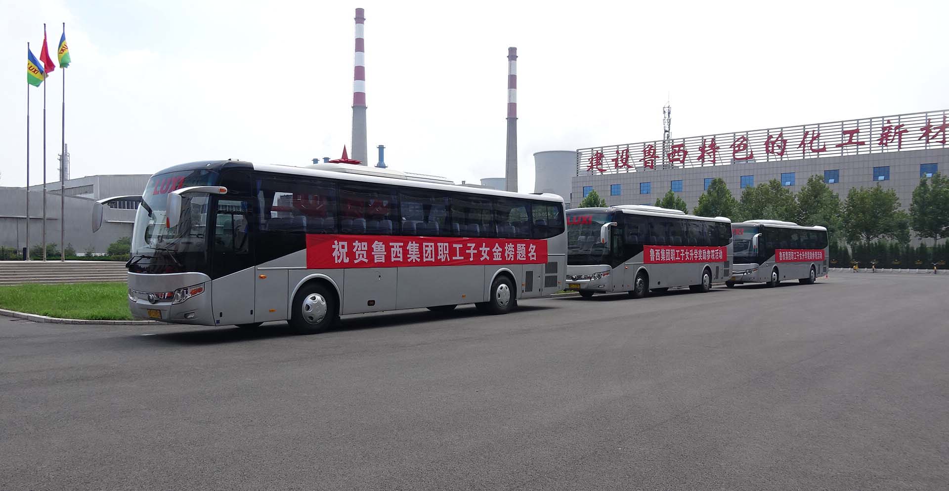 8月21日上午,懸掛著“祝賀魯西集團職工子女金榜題名”、“魯西集團職工子女升學(xué)獎勵參觀活動”條幅的三輛通勤客車,分別在聊城濱河小區(qū)、英才小區(qū)以及東阿廠區(qū)門口迎接金榜題名的學(xué)子們。2018年參加高考的150余名優(yōu)秀學(xué)子及家長參加活動。
