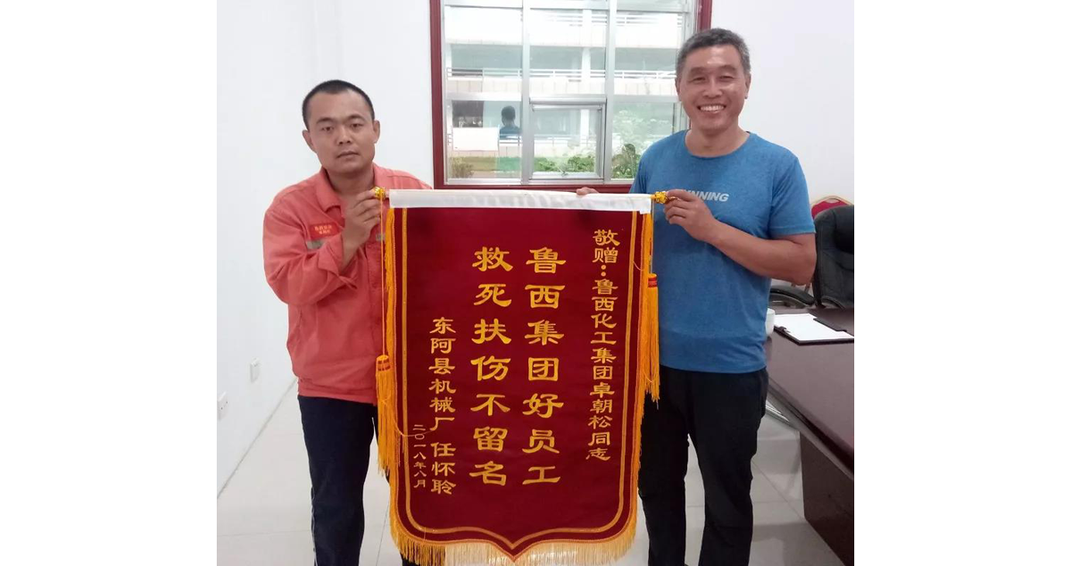 8月30日,在魯西集團(tuán)接待中心,迎來(lái)了三位滿面感激的外來(lái)人員,他們一進(jìn)門(mén)就一邊把一面寫(xiě)有“救死扶傷不留名,魯西集團(tuán)好員工”的錦旗在接待臺(tái)上展開(kāi),一邊迫不及待的向接待人員打聽(tīng)一位叫卓朝松的魯西員工,急急傾訴著他們的來(lái)意和感激之情。經(jīng)過(guò)接待人員的熱誠(chéng)接待和細(xì)細(xì)探詢,終于在魯西集團(tuán)氯甲烷事業(yè)部聯(lián)系到這位名叫卓朝松的魯西員工,經(jīng)過(guò)雙方見(jiàn)面,接待人員漸漸明白這件事的來(lái)龍去脈。