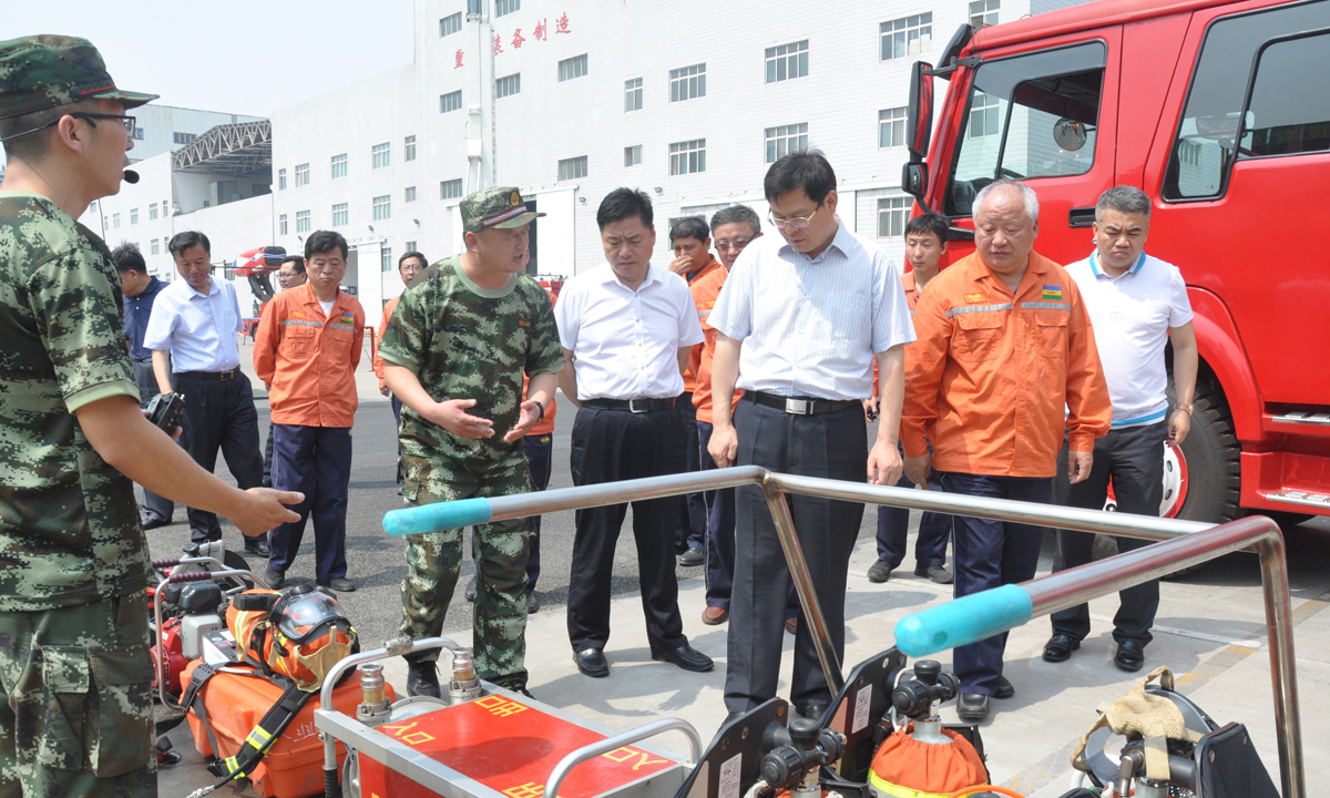調研組領導先后參觀了園區生產裝置、重型裝備制作廠房、應急救援中心,聽取了集團在化工生產運行、裝備制造、應急救援隊伍建設方面的情況介紹,現場查看了消防救援裝備、遠程平臺的配置管控情況,并對渦噴救援車噴水演練、隊員個人綜合體能訓練情況進行了現場觀摩。