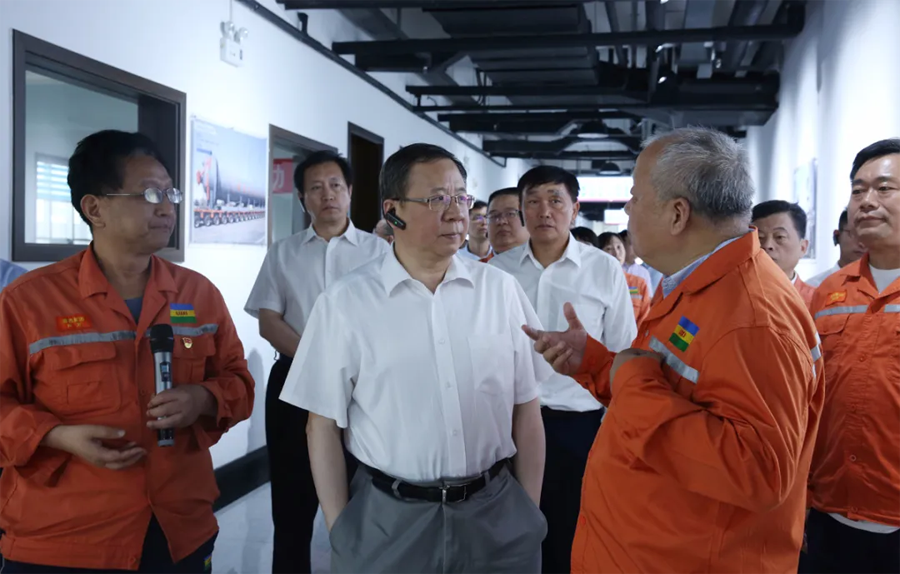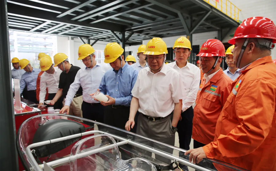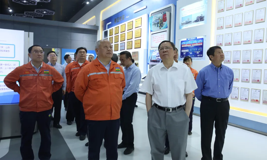 領導一行先后參觀了園區重型裝備、應急救援中心、尼龍6和聚碳酸酯包裝現場、廢水零排放、氣化爐、固廢處置現場、技術中心大樓和展廳。領導一行進車間、看現場、聽介紹,和員工攀談。現場了解了化工工程裝備的強大制造能力,吸收再創新能力和先進的自動化水平;觀看了魯西應急消防設施配備和應急隊員綜合科目訓練展示;了解了尼龍6和聚碳酸酯的產能、技術水平、下游產品和市場前景,以及氣化爐的核心技術優勢;聽取了關于園區零排放目標實施,建設綠色化工園區、智慧化工平臺建設和較高資質設計能力的匯報;并且通過參觀展廳,細致了解了集團的發展歷程、目前的發展狀況和未來的發展規劃。